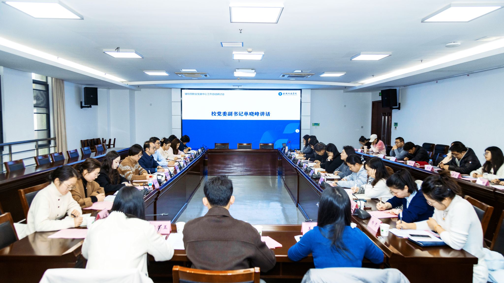 12月24日上午,我校在江宁校区图书馆第一报告厅召开辅导员职业发展中心2025年工作总结研讨会。校党委副书记单晓峰出席并讲话,党委学生工作部部长汪如春及中心全体成员参加会议,党委学生工作部副部长王姝主持。