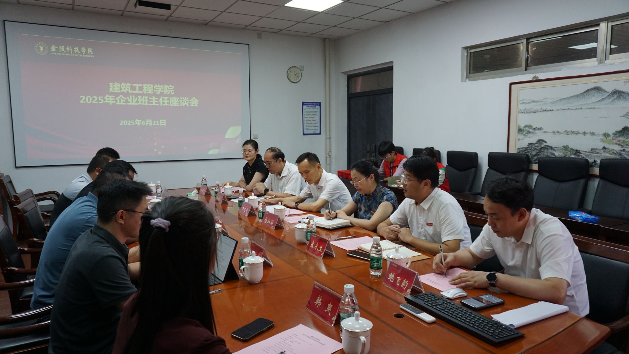 为深化校企协同育人机制,共绘应用型人才培养新图景,6月21日校园开放日期间,建筑工程学院举行企业班主任座谈会暨聘任仪式,副校长王延光及建筑工程学院相关负责人参加。会议邀请了1987届道路桥梁专业校友、现任南京公路协会常务副会长、南京交通工程有限公司执行董事徐军,2002届工程项目管理与工程监理专业校友、现任六度设计院南京分公司总经理杨功庆,2010届建筑学专业校友、现任江苏苏地行土地房产评估/南京众诚规划设计咨询有限公司副总规划师兼三所所长孙文军,2017届建筑学专业校友、现任南京亿丰建设有限公司总经理臧蒋涛,2017届工程管理专业校友、现任南京安智建设工程有限公司商务经理韩爽,2020届建筑学专业校友、现任南京昱升电子商务有限公司总经理李河池。