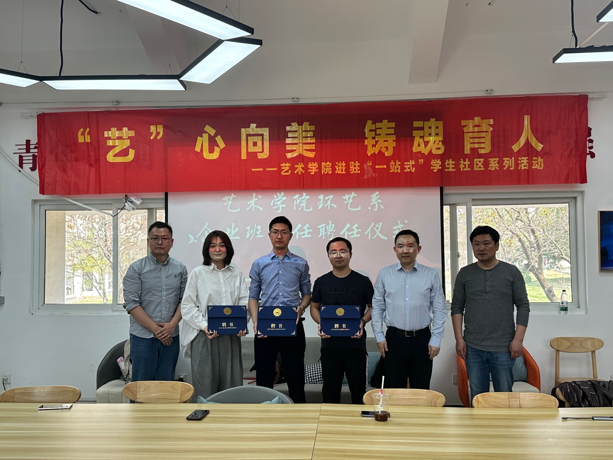 为深化产教融合,创新人才培养机制,艺术学院于南区08一站式社区举行环艺系企业班主任聘任仪式。学院党委副书记鲍锐,学工办主任丛扬子,环艺系主任徐晶、副主任赵子君,南京薄幕软件科技有限公司总监任远东(在宁校友),意趣数字科技有限公司创始人周炎、高吟及环艺系环境设计、艺术与科技学生代表参与了此次活动。
